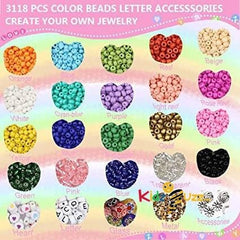 - YOU WILL GET: 3118 pcs jewelry kit including 16 colors of 4mm beads*, each color has 120 beads, 4 colors of 4mm tubular beads*190, A~Z letter beads*170, heart-shaped beads*55, glazed beads *15, alloy accessories *195, black and white crystal wire 1 each, tweezers *1, storage box *1