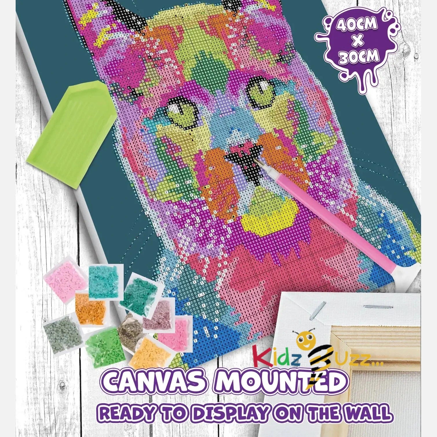 Our 30cm x 40cm Cat framed Diamond Painting kit is the perfect rainy day activity. It is pre-stretched on a frame so you don't need to fiddle around unrolling it and flattening it or finding somewhere to paint it. It is pre-mounted and ready to paint straight away.