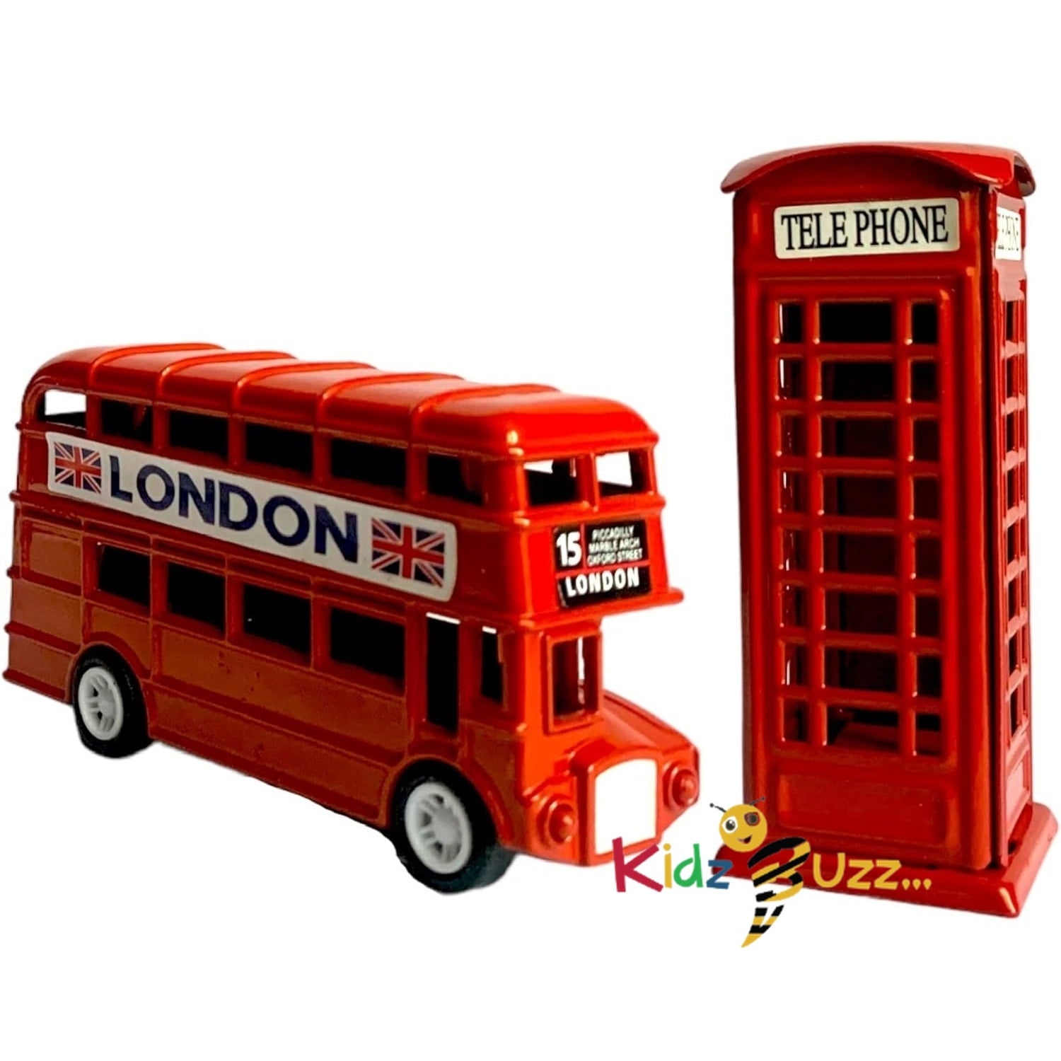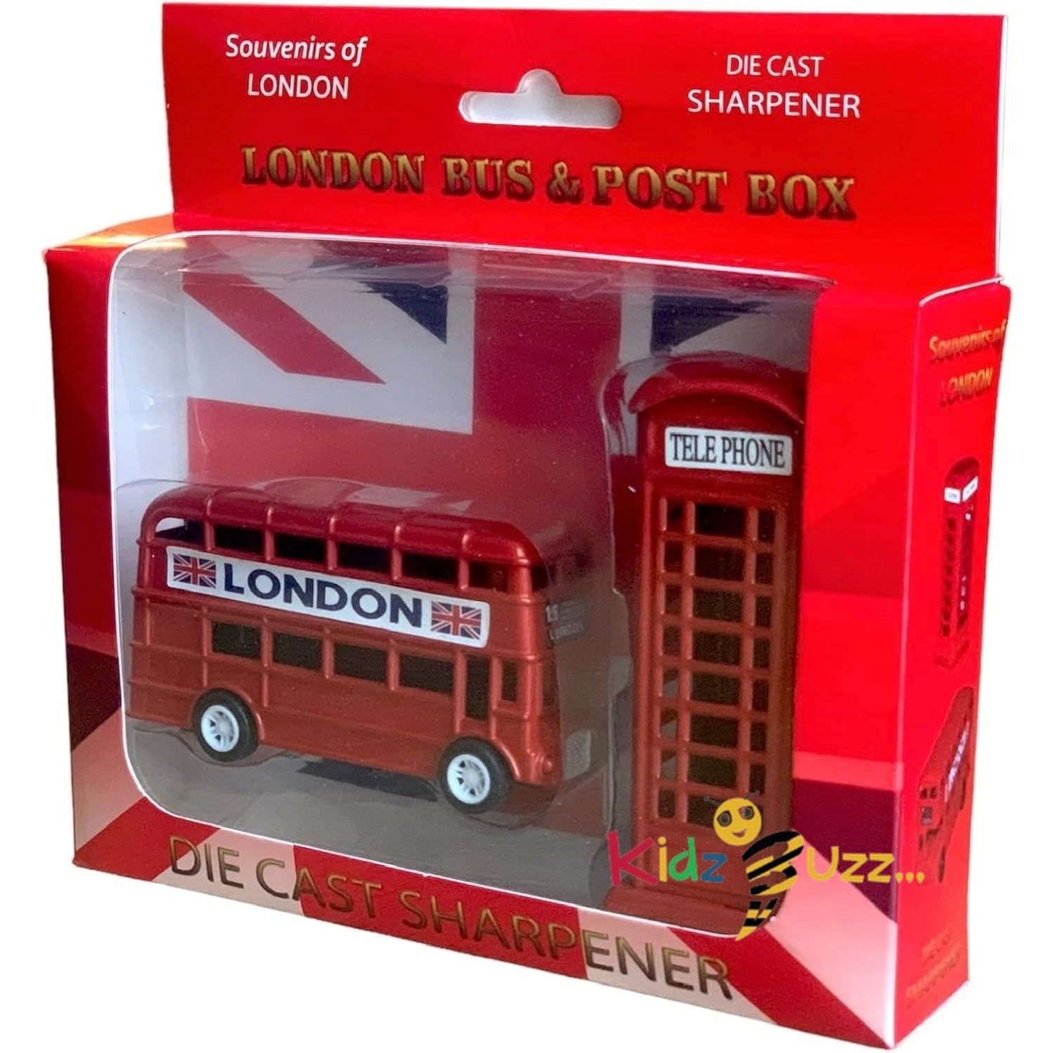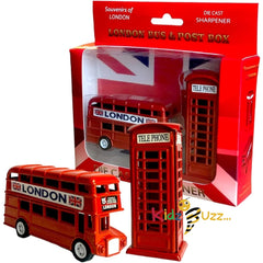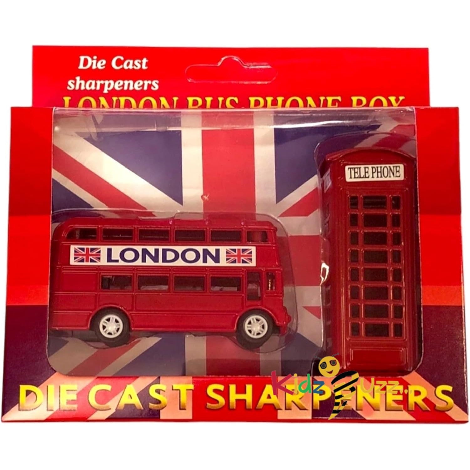 - London England Metal Red Bus & Telephone Box pencil Sharpener set