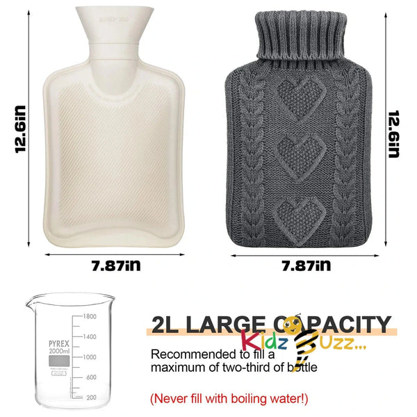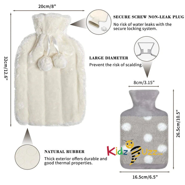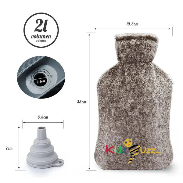 2L Hot Water Bottle with Fleece Covers- Soft Plush Cover