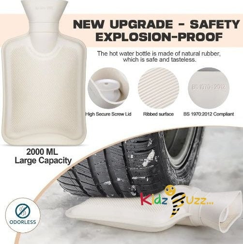 • New Hot Water Bottle with Soft Cover - 2L Classic Rubber Hot Water Bag New Hot Water Bottle with Soft Cover - 2L Classic Rubber Hot Water Bag