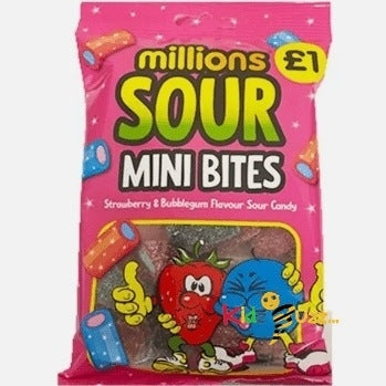Millions Strawberry Bubble-gum Sour Mini Bites Pack of 3 Gift for Kids