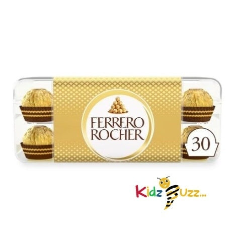 Ferrero Rocher; a whole hazelnut in milk chocolate and nut croquante - 30 individually wrapped pieces in gift box