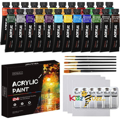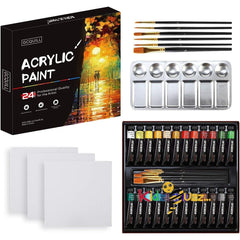 - COMPLETE ACRYLIC PAINT SET:Pick the acrylic paint sets that include more than just paint! In addition to 24 tubes of high-quality paint, this kit comes with 6 premium brushes, 1 paint tray and3 paint palette.