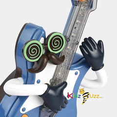 - This guitar has multiple features and colorful keys that help improve a baby’s memory. Batteries are required to operate. It includes illuminating lights, sounds, and rhythms for pretend play and learning.