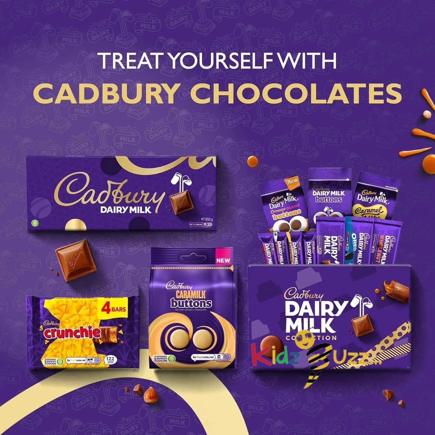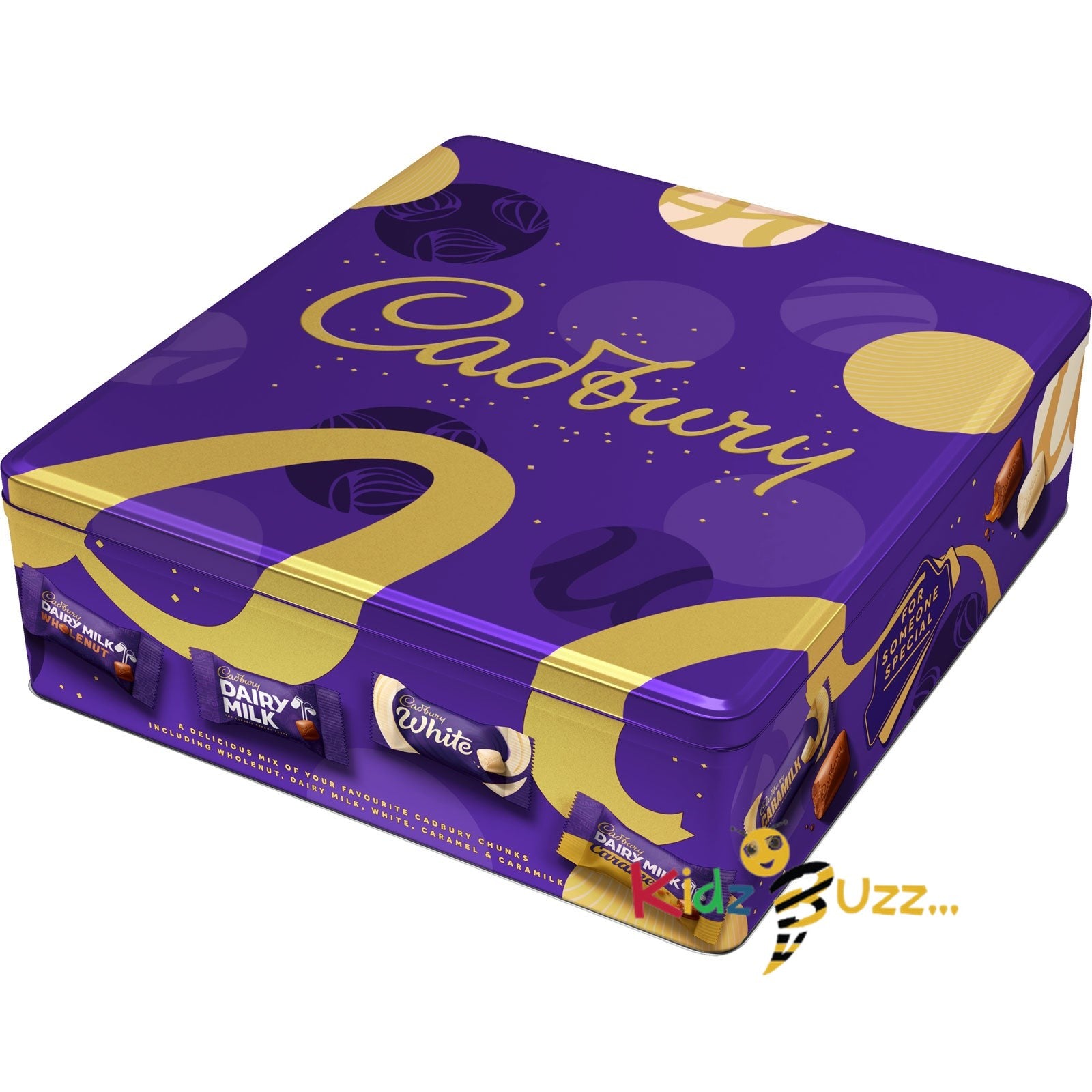 - SHARING TIN: A delicious mix of chunky Cadbury favourites including Dairy Milk Wholenut, Dairy Milk, Cadbury White & Dairy Milk Caramel