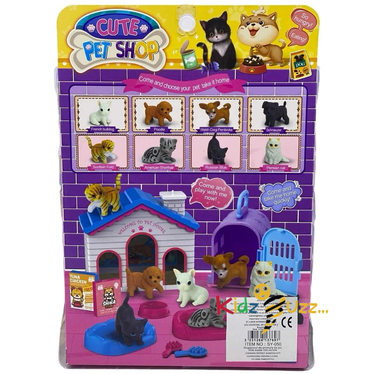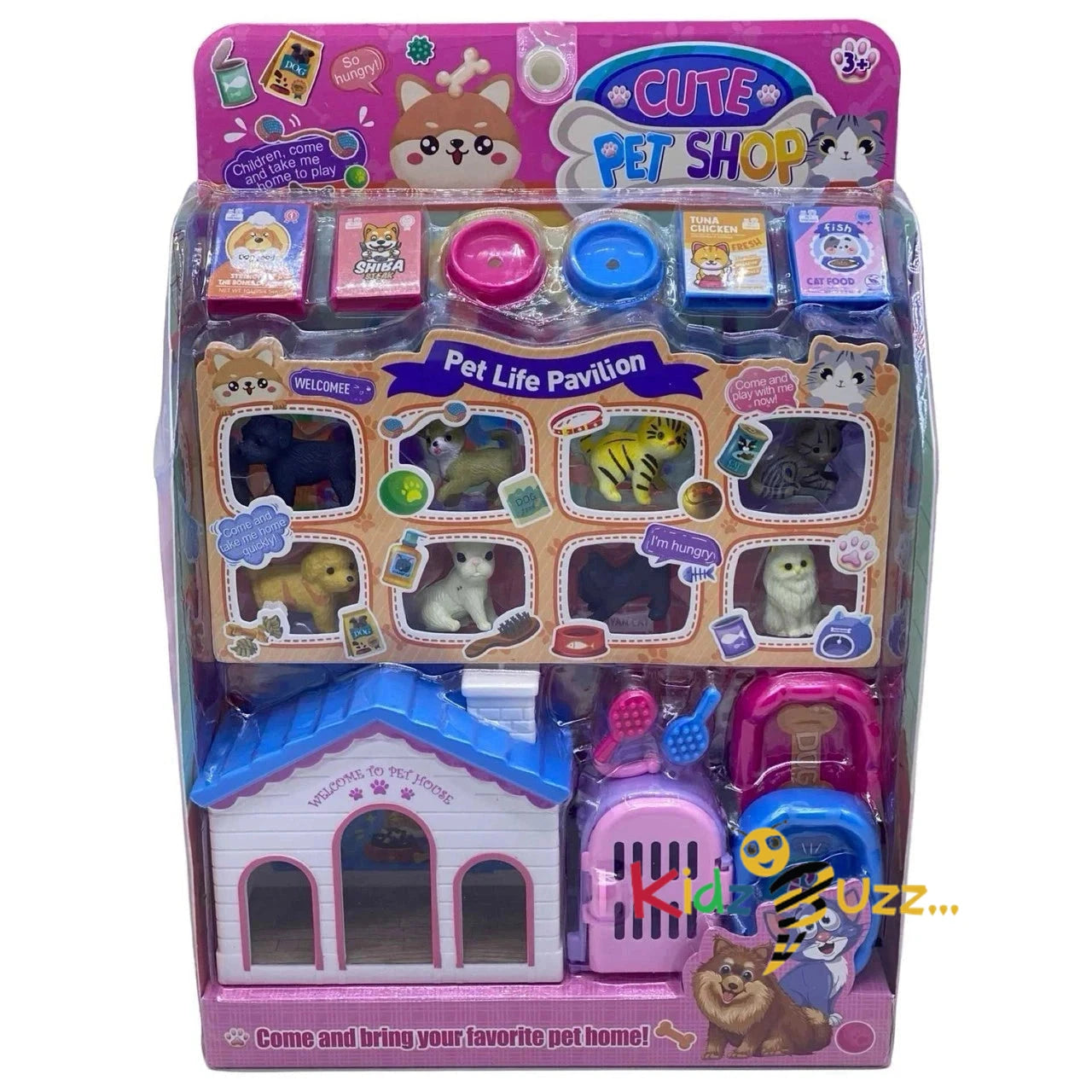 Create your own pet shop with this adorable set! Includes realistic dog and cat figurines, pet house, carrier, brushes, food bowls and food boxes. Perfect for kids who love animals, this set encourages imagination and role-play.