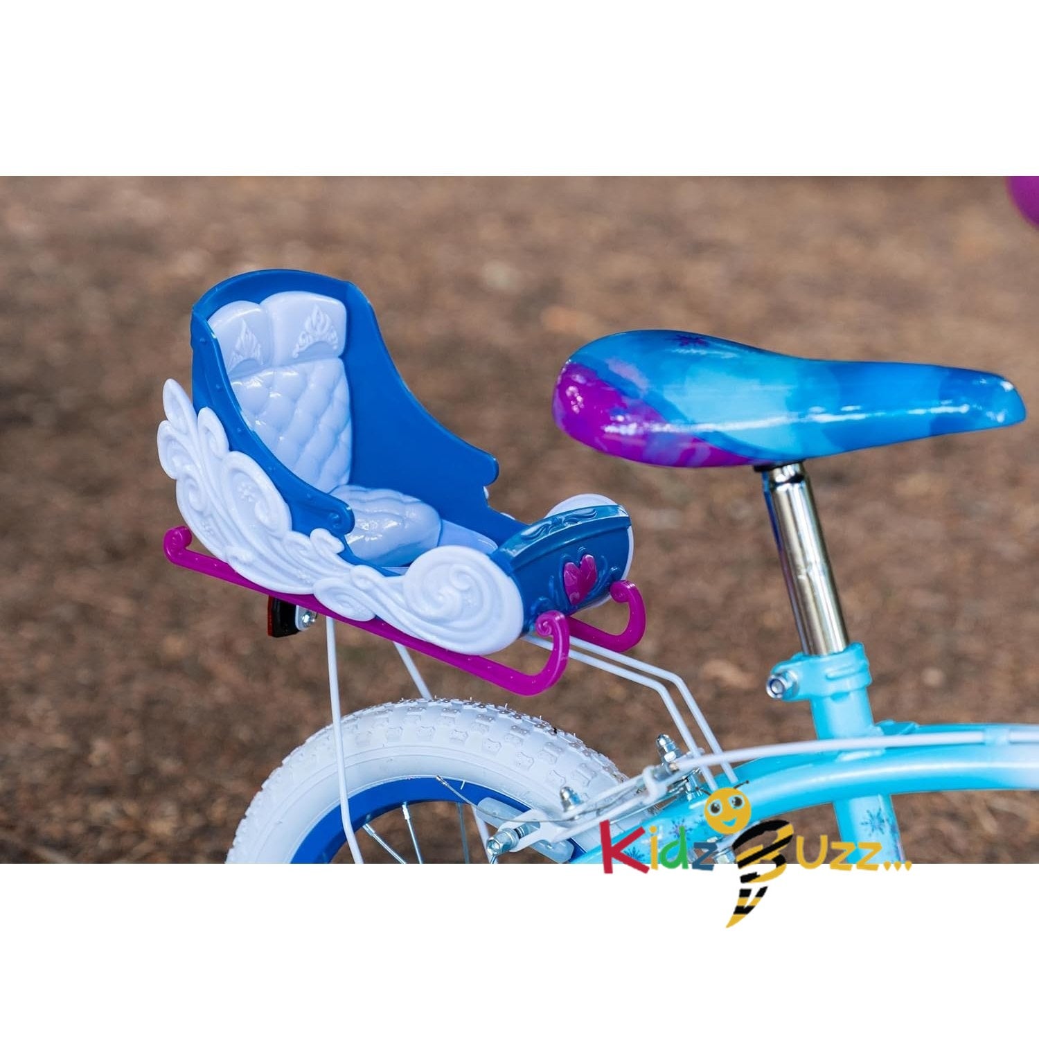 Enchanting Frozen Design: Transport your child to the magical world of Arendelle with this 14" girls' bike inspired by Disney's Frozen. Whimsical Sleighbell Adventure: A rear-mounted sleigh lets your child carry dolls and toys for enchanting journeys and imaginative play. Sky Blue & White Elegance: The bike's design captures the...