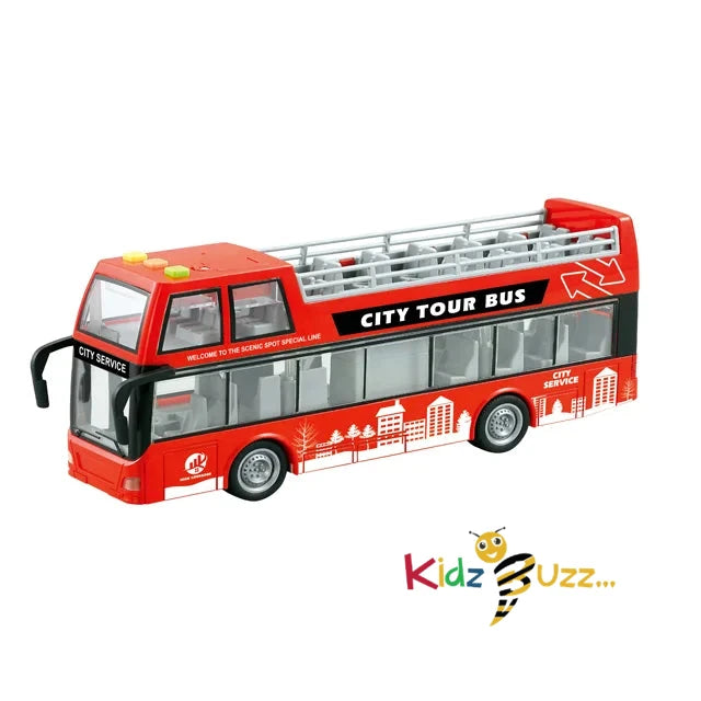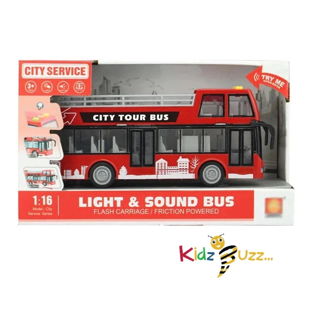 High Quality Open Door B/O Tour Bus Model Friction Toy Bus With Light and Sounds for Kids