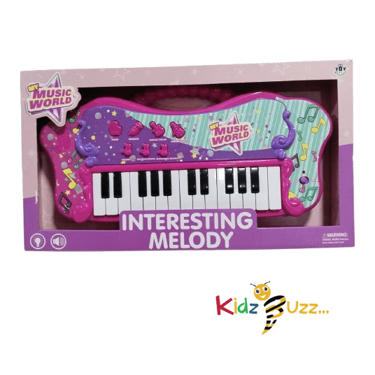 Embark on a magical musical journey with the Music World Melody Piano Toy! With realistic piano keys and musical buttons, this toy is perfect for introducing your little one to the world of music. This brightly coloured toy includes lights and sounds.