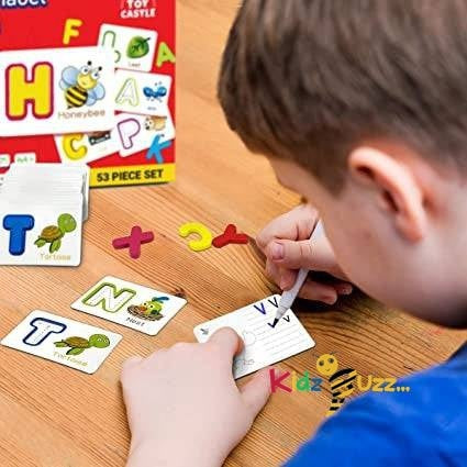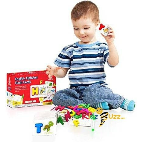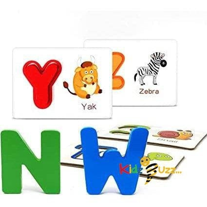 - Learning English Letters: The flashcard Kit contain 26 two sided Alphabet Cards ABC from A to Z and 26 high quality wooden blocks. Alphabets are colourful and babies like the colours and easy to teach phonics by games.