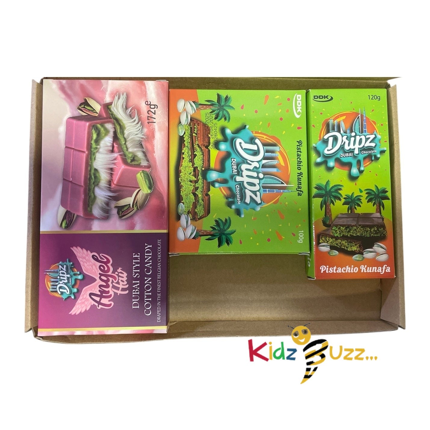 Dripz Dubai Chocolate Pistachio Kunafa Bar 120g and 100g