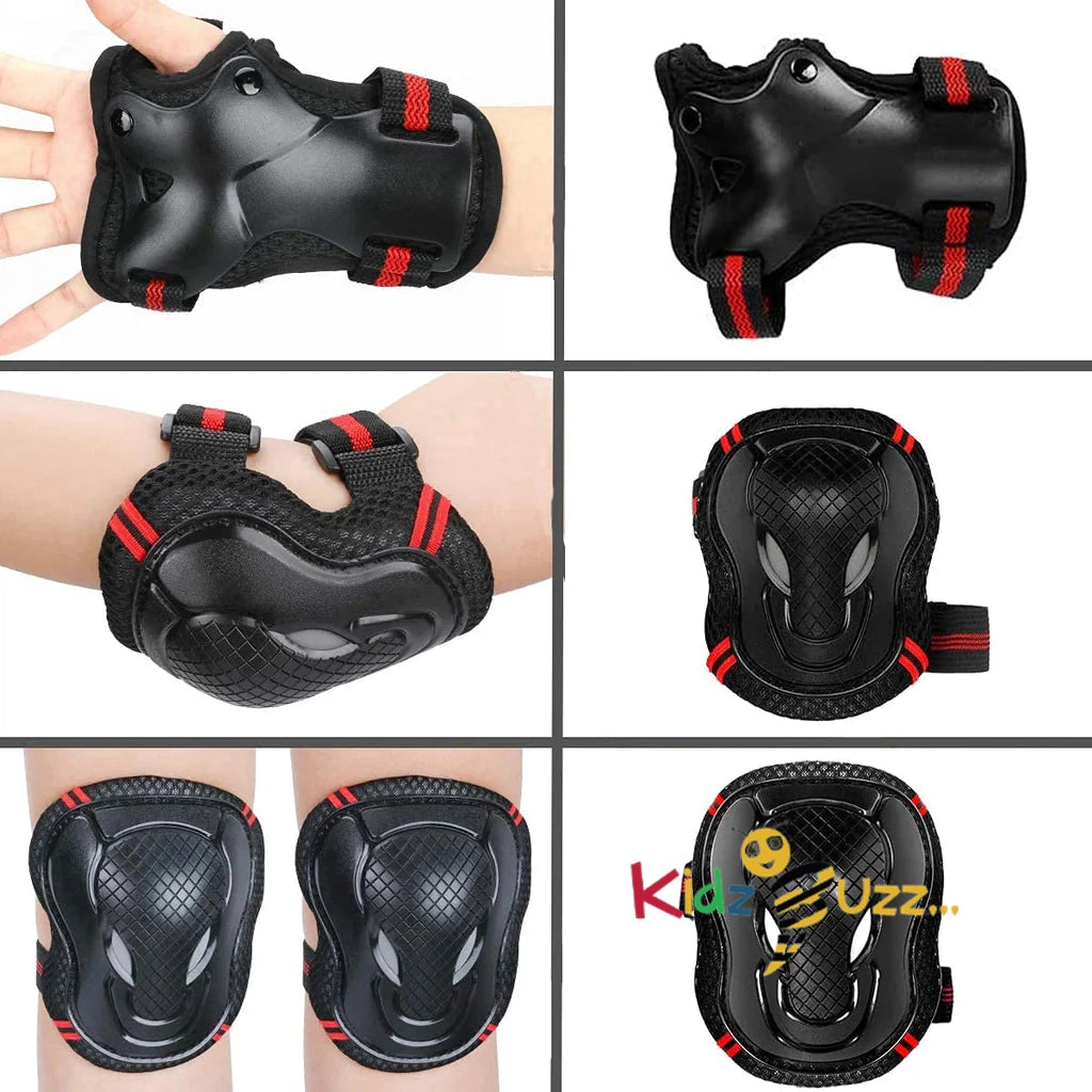 Brand New LINI Outdoor protective sports equipment for children and adolescents. Knee pads, wrist pads, elbow pads, 6-in-1, suitable for skating, cycling, and scooter hei-black, M - Sports & Outdoors