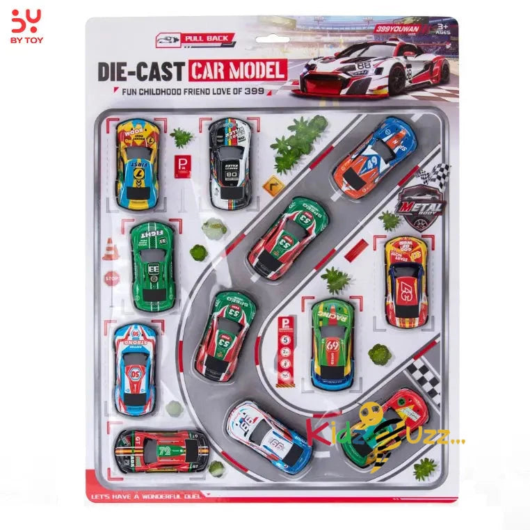 12pcs Iron Shell Recoil Vehicles Set Pull Back Alloy Car