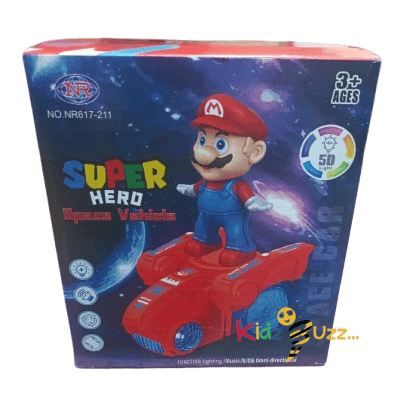 Mario Car Toy with Music and Lights, Universal Wheel for 360° Movement, Battery Operated Fun Toy for Kids, Exciting Gift for Boys and Girls