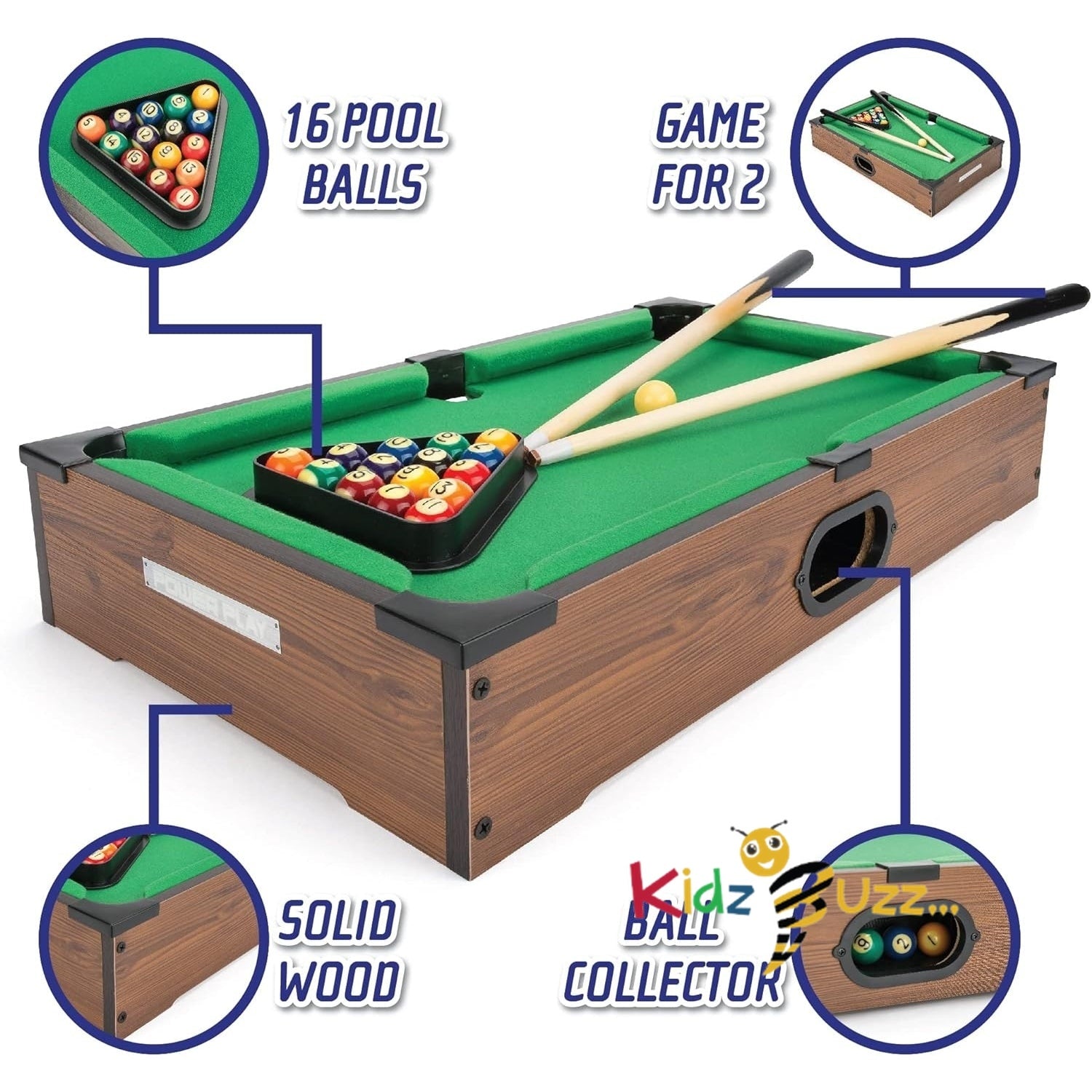 - COMPLETE POOL TABLE GAME: this 20” Power Play table top pool table is designed to look and play just like the real deal. It is built to a high-quality specification, with a sturdy and well planned design that will provide hours of sharp shooting fun.