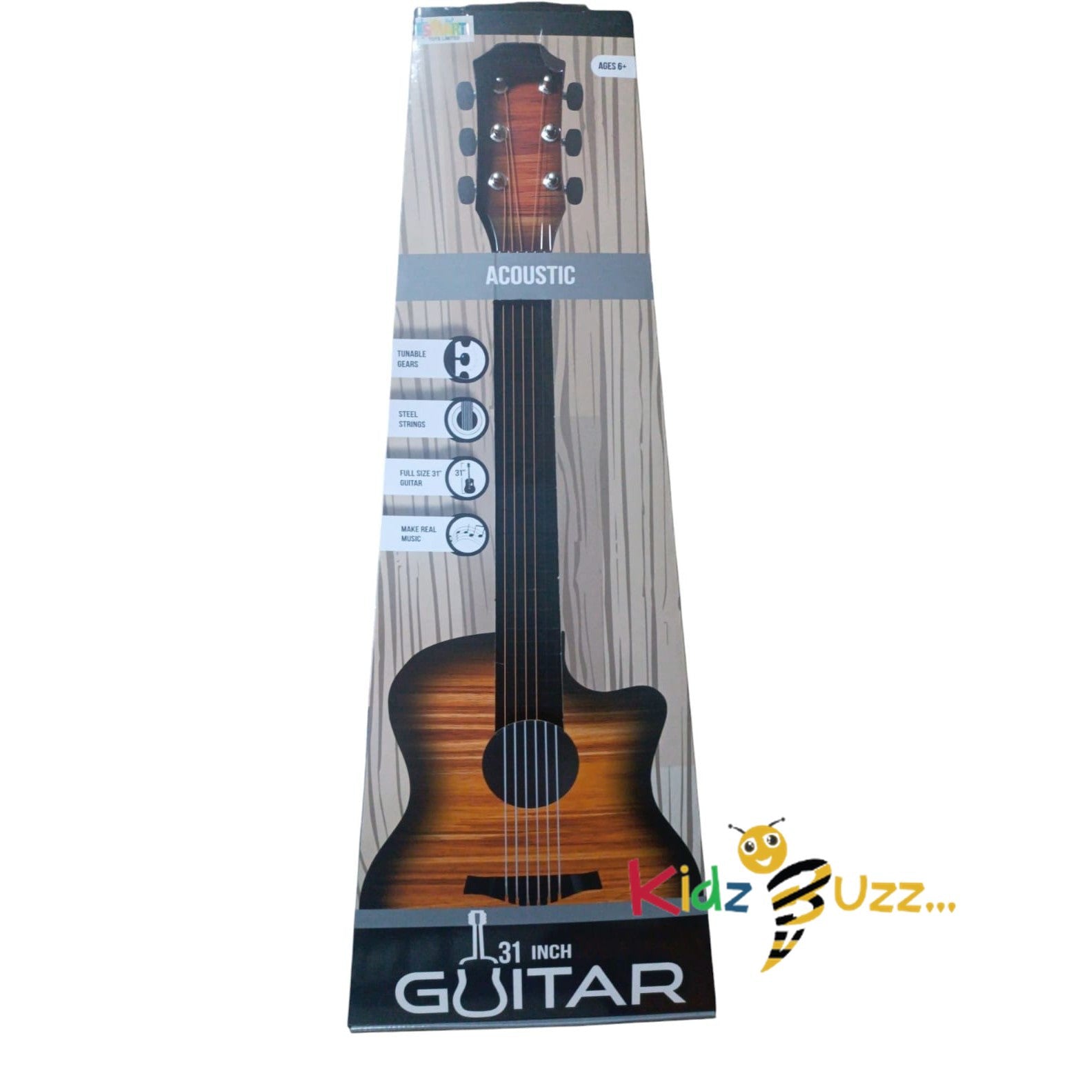 This 31-inch acoustic guitar is ideal for beginner musicians & fun for pros. take ur instrument wherever u travel, learn acoustic versions of ur fave songs & write some new ones! with 6 steel strings & tunable gears - make real music! tbh, a good old-fashioned singalong can be amazing....
