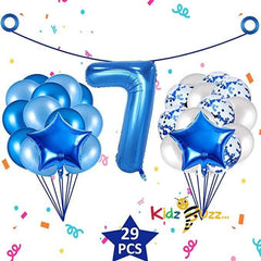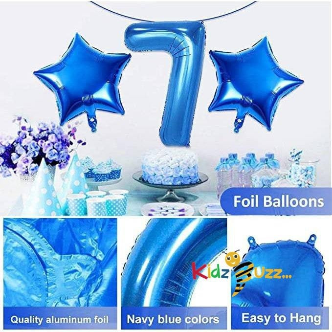 【Value Decoration Set】- You will get 1pcs * 32 inch blue number 7 balloon, 2pcs * 18 inch blue star foil balloons, 2pcs * 5 meter dark blue ribbons, 6pcs * 12 inch blue confetti balloons, 6pcs * 12 inch baby blue latex balloons, 6pcs * 12 inch dark blue...