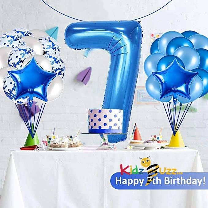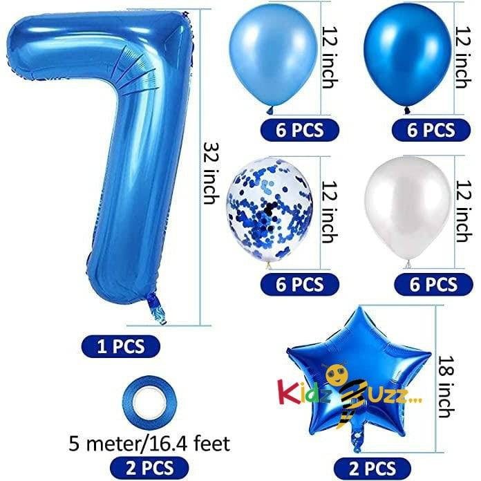 - 【Value Decoration Set】- You will get 1pcs * 32 inch blue number 7 balloon, 2pcs * 18 inch blue star foil balloons, 2pcs * 5 meter dark blue ribbons, 6pcs * 12 inch blue confetti balloons, 6pcs * 12 inch baby blue latex balloons, 6pcs * 12 inch dark blue latex balloons, 6pcs * 12 inch white latex balloons.