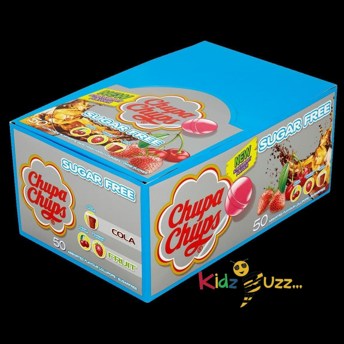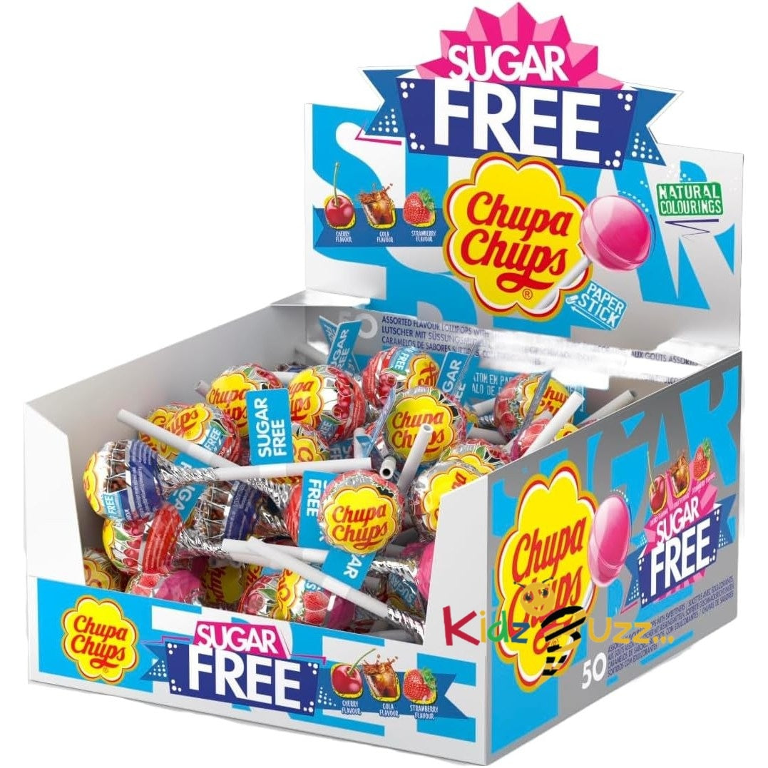 Chupa Chups Sugar Free Lollipop, Cherry,Cola & Strawberry Flavoured Assorted Party Sweets - 50 Lollies
