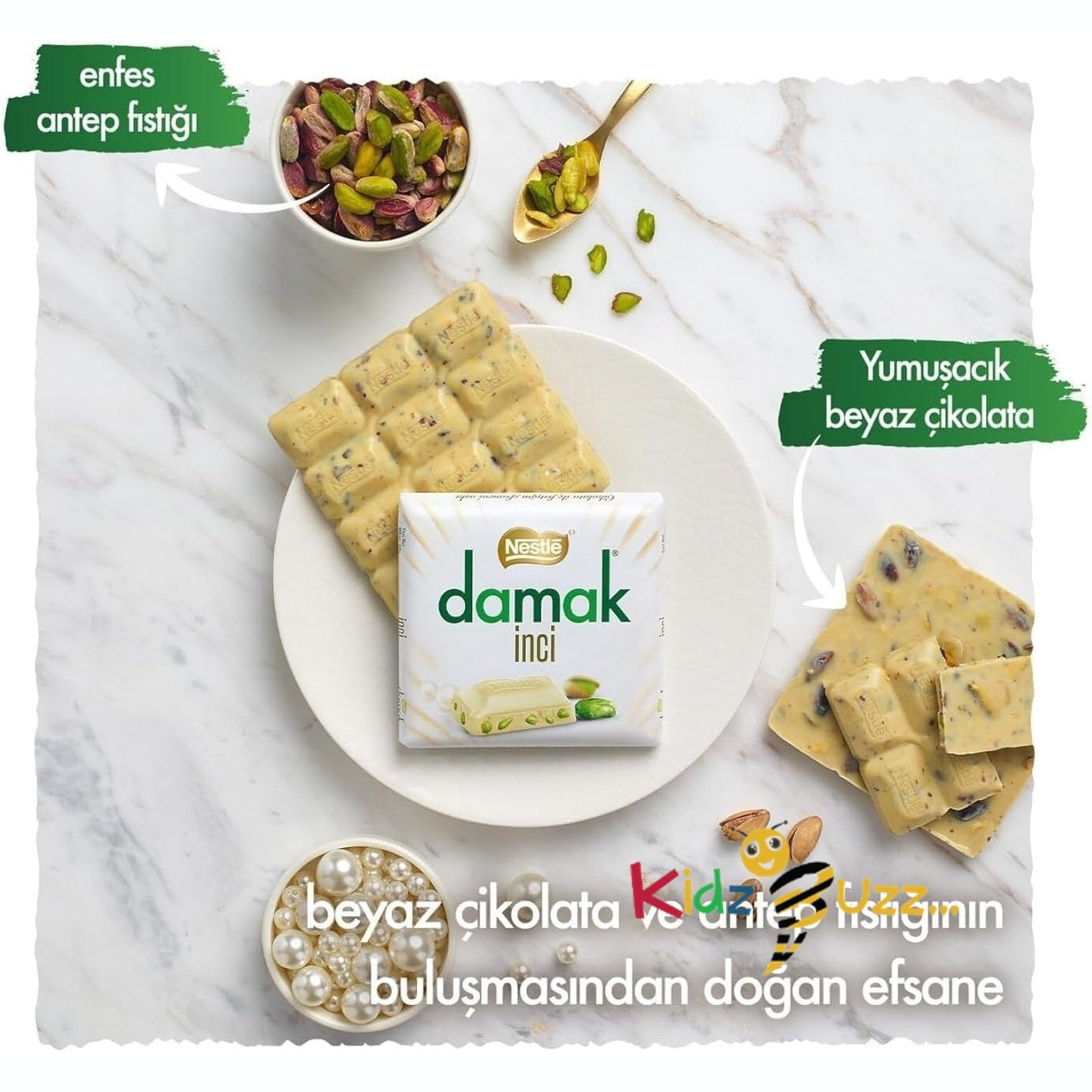 Damak İnci White Chocolate with Pistachio 60g ((Full Box)) Delicious Tasty And Twisty Treat Gift Hamper, For Christmas,Birthday,Easter Gift