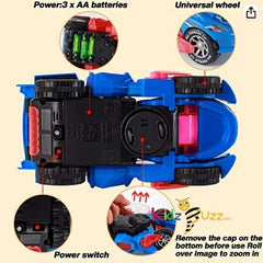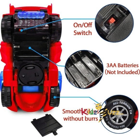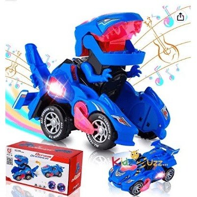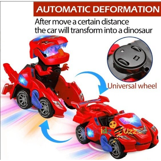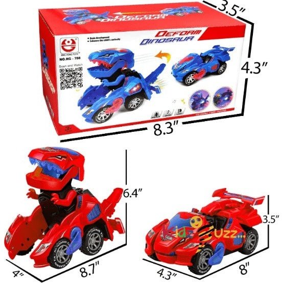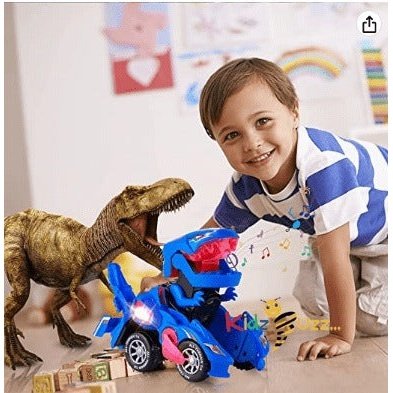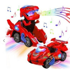 - ♥Flashing Light And Sound: ----With lights and music, it will make the coolest roar. With a battery, you can have brilliant LED lighting effects! Lights can be automatically changed according to music.This deformation car needs 3 AA Batteries(not included). the headlight on the top of the dinosaur will change in accordance with the changing sound.