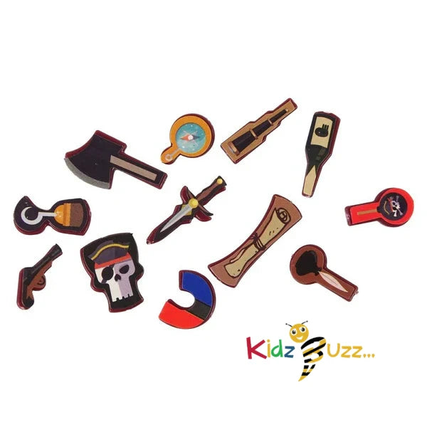 The board features 12 different spots on the pirate's body on which to place small accessories belonging to the pirate. Spin the wheel, check what the arrow indicates. Try to carefully pull an object out of a given part. But be careful! Just lightly touch the pirate's surface and he will tremble, start buzzing and you lose. Try not to wake him up.