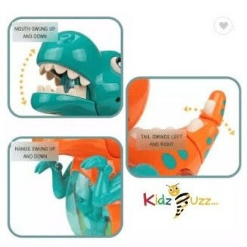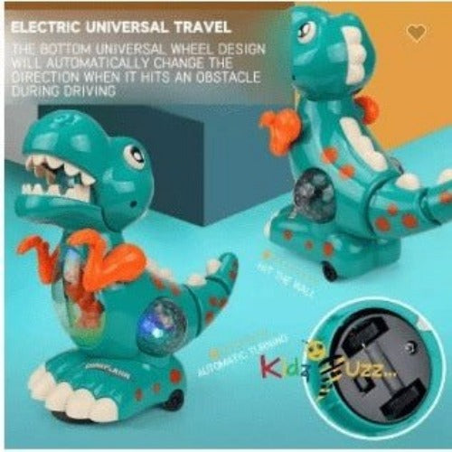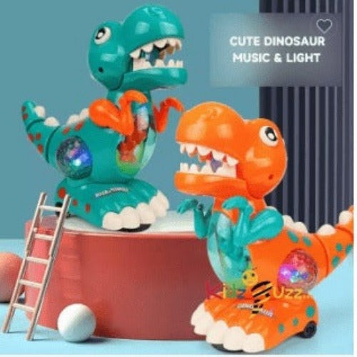 - This electric dinosaur toy has two colors: green and orange. This dinosaur toy has the function of music and light. It can swing in multiple parts, move forward and backward, and turn when encountering obstacles.