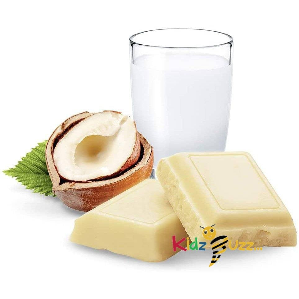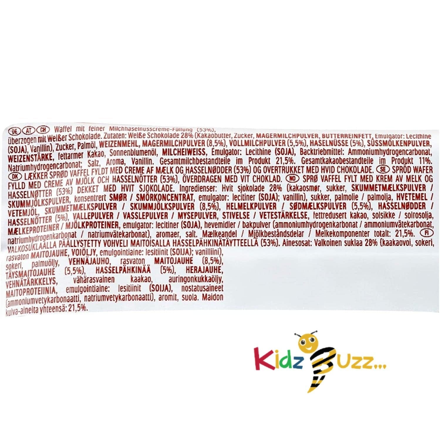 - White chocolate covered wafer with smooth milky and hazelnut filling
