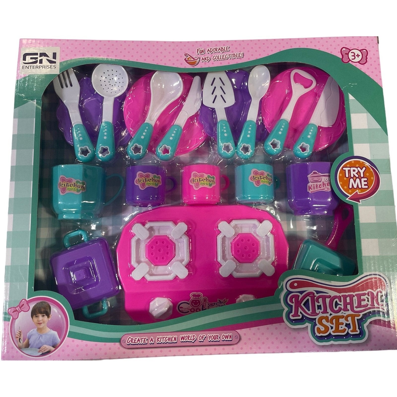 This brightly colored Kitchen cooking set has ample working space for creative minds, which is an enjoyable way to develop a sense of world, and motor skills and enhance the creative mind while encouraging role play.