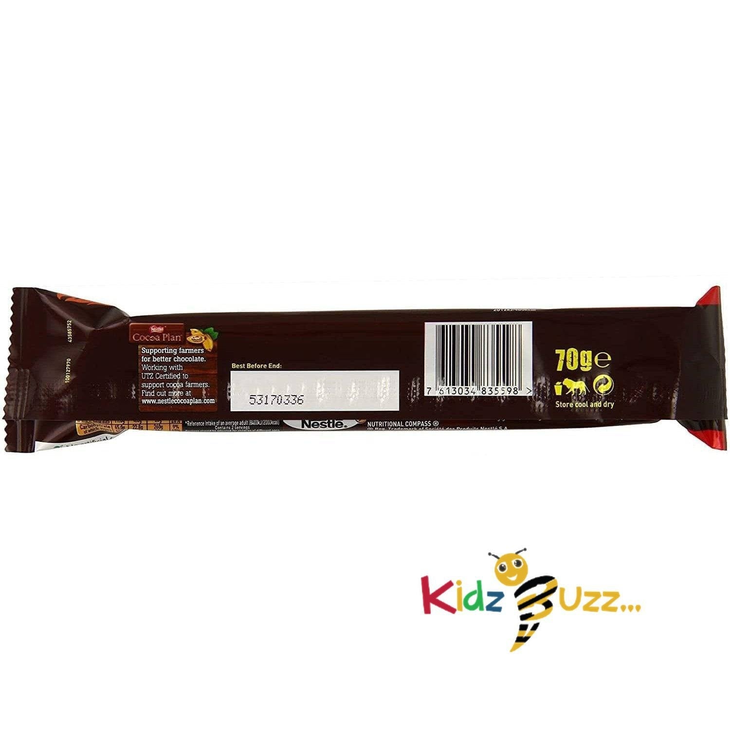 Filled wafer with caramel (35 per cent) and cereals (8 per cent) covered with milk chocolate (38 per cent) Enjoying chocolate as part of a varied, balanced diet and a healthy lifestyle Crispy wafer, chewy caramel and crunchy cereals covered in smooth, creamy milk chocolate No artificial colours, flavours and...