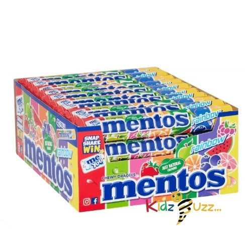 Delicious Chewy Mentos sweets in a rainbow of 7 different flavours. Each pack is guaranteed to contain all 7 flavours in the order shown on the wrapper. Enjoy a colourful mix of watermelon, strawberry, apple, orange, raspberry, grapefruit and blueberry flavours.