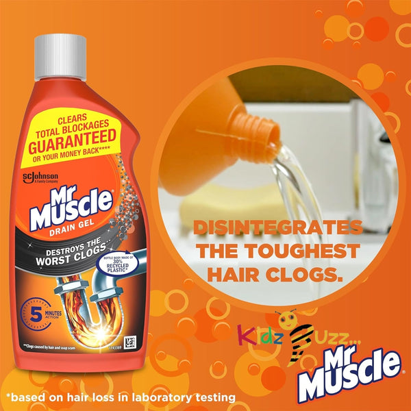 Mr Muscle drain unblocker works quickly and effectively to unblock your drains, bath, showers and sinks. This powerful drain cleaner destroys even the toughest of clogs, and thanks to this special offer you can get 1 Litre for the price of 500ml.