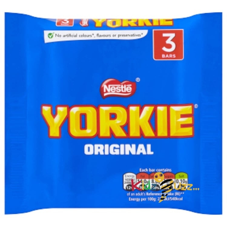 Nestle Yorkie Original Chocolate Bars 3 Pack 46g Crunchy biscuit covered in smooth milk chocolate. Good food, good life. No artificial colours, flavours or preservatives. 1 box contain 3 Bars