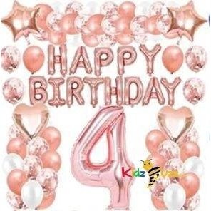 Number 4 Rose Gold Happy Birthday Balloon Set
