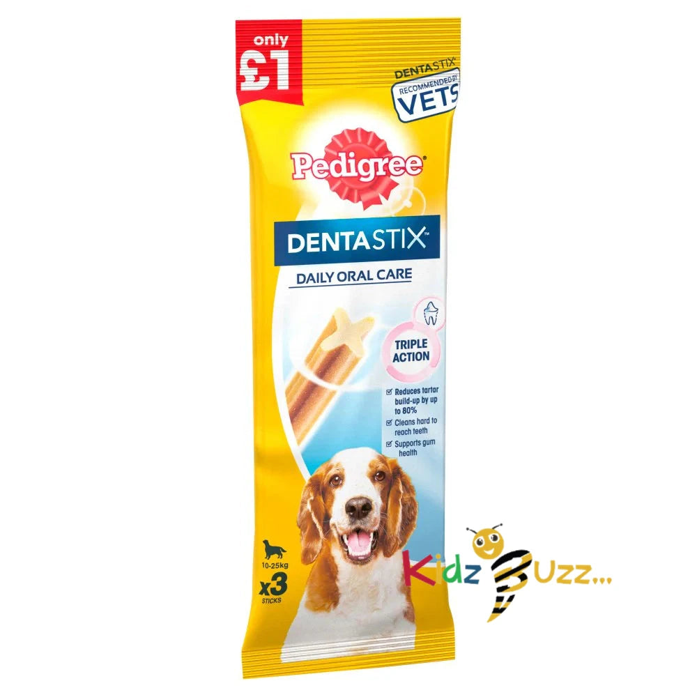Buy Box of 18 x 77g Pedigree Dentastix Daily Medium Dental Dog Chews 3 Stick. DentaStix Daily Oral Care dental chews for dogs are scientifically proven to reduce tartar build up by up to 80% when fed daily. Pedigree daily dog dental sticks promote oral health The combination of a...