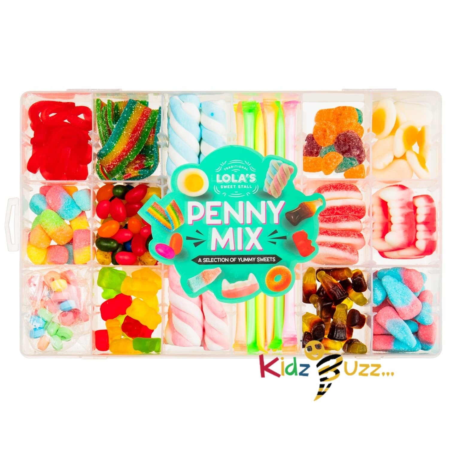Penny Mix Sweets Selection Tray 511g. Enjoy all the classic sweets from your childhood with this novelty Penny Mix Selection Tray. Filled with an assortment of all your old favourite penny sweets. Makes a great gift for those with a sweet tooth. Not suitable for vegetarians.