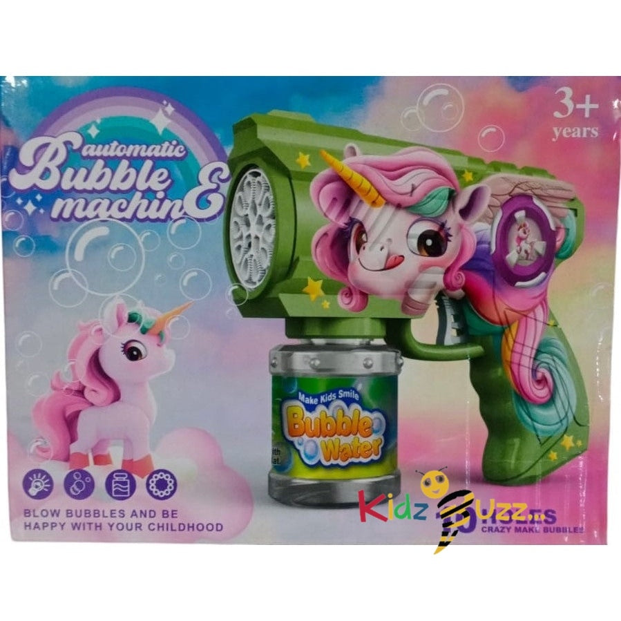 Pink Green Bubble Gun Unicorn Machine for Kids,10 Holes Bubble Toys with Light Bubble Makers Summer Outdoor Toy Gifts for Kids.