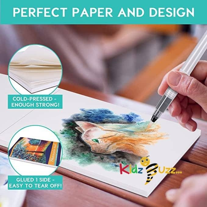 - WATERCOLOUR PAPER SET: This watercolour paper set includes--Two Watercolor Paper Pad, 3 Nylon Hair Painting Brush Pen (assorted sizes), 2 Water Tank Brushes, 1 HB Pencil for fine detail or broad stroke painting. 140lb/300gsm paper is heavier and thicker than normal watercolor paper, make it more stable and resistant for aging.