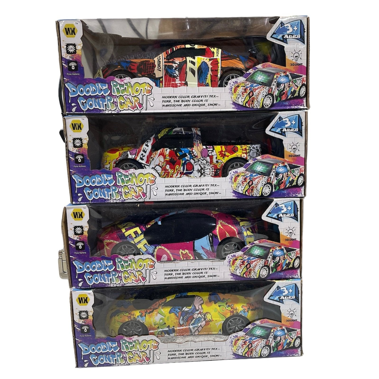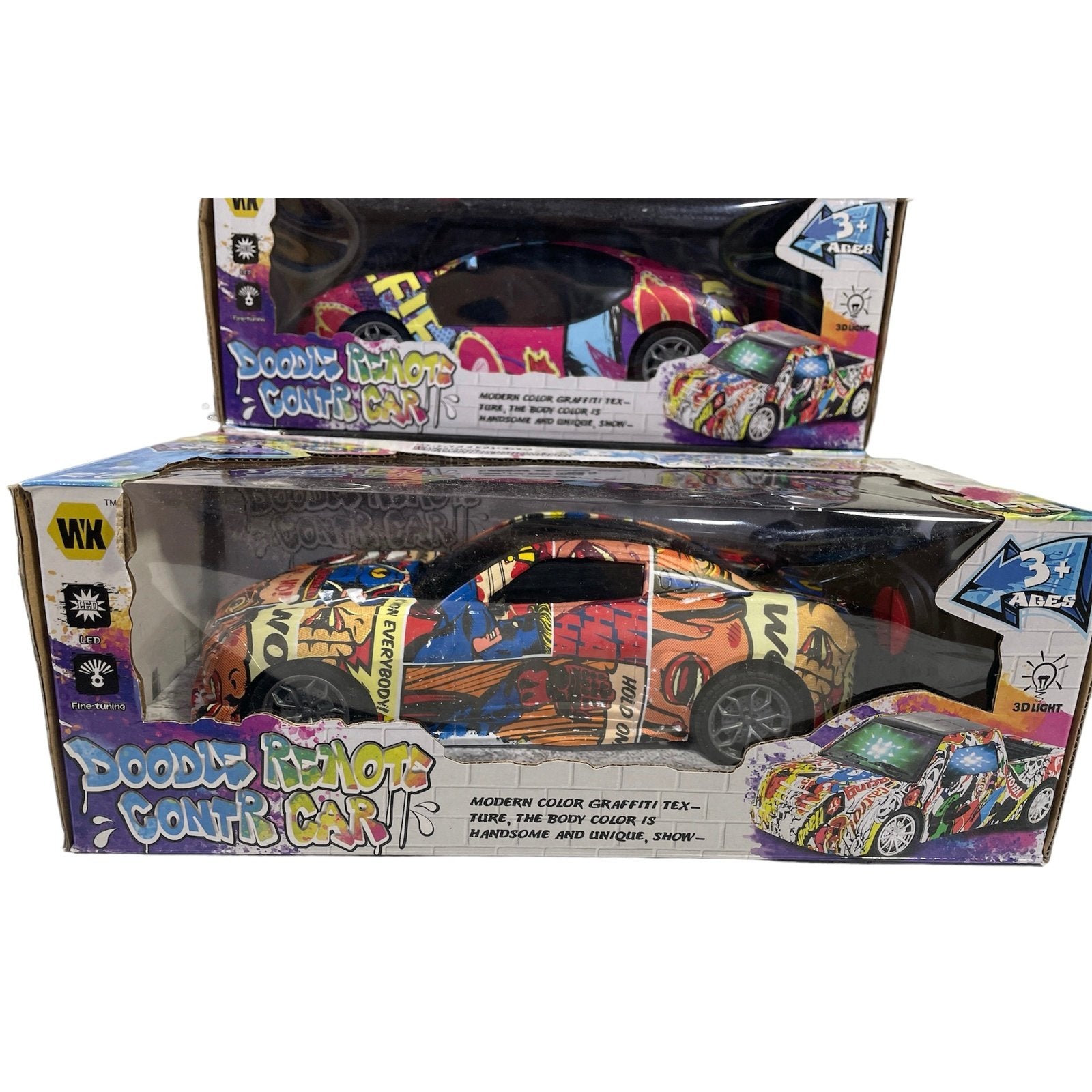 RC Car Remote Control with Abstract and Artistic Motifs RC Car Graffiti Motifs Cool remote control toys for children aged 3+, abstract or artistic editions that operate using a small remote control are suitable for both children and adults to grip. Specifications: -. forward, backward, turn right, turn left -. Super body shape or luxury car with cool motifs. -. Hard plastic materials are stronger and safer for children.Random Designs Will Be Sent