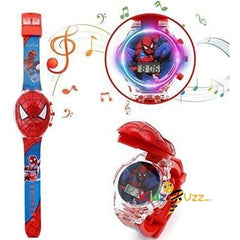 Spider Man Kids Light Glowing Watch with Music Tune and Face Cover Multicolor Led Digital Light Kid