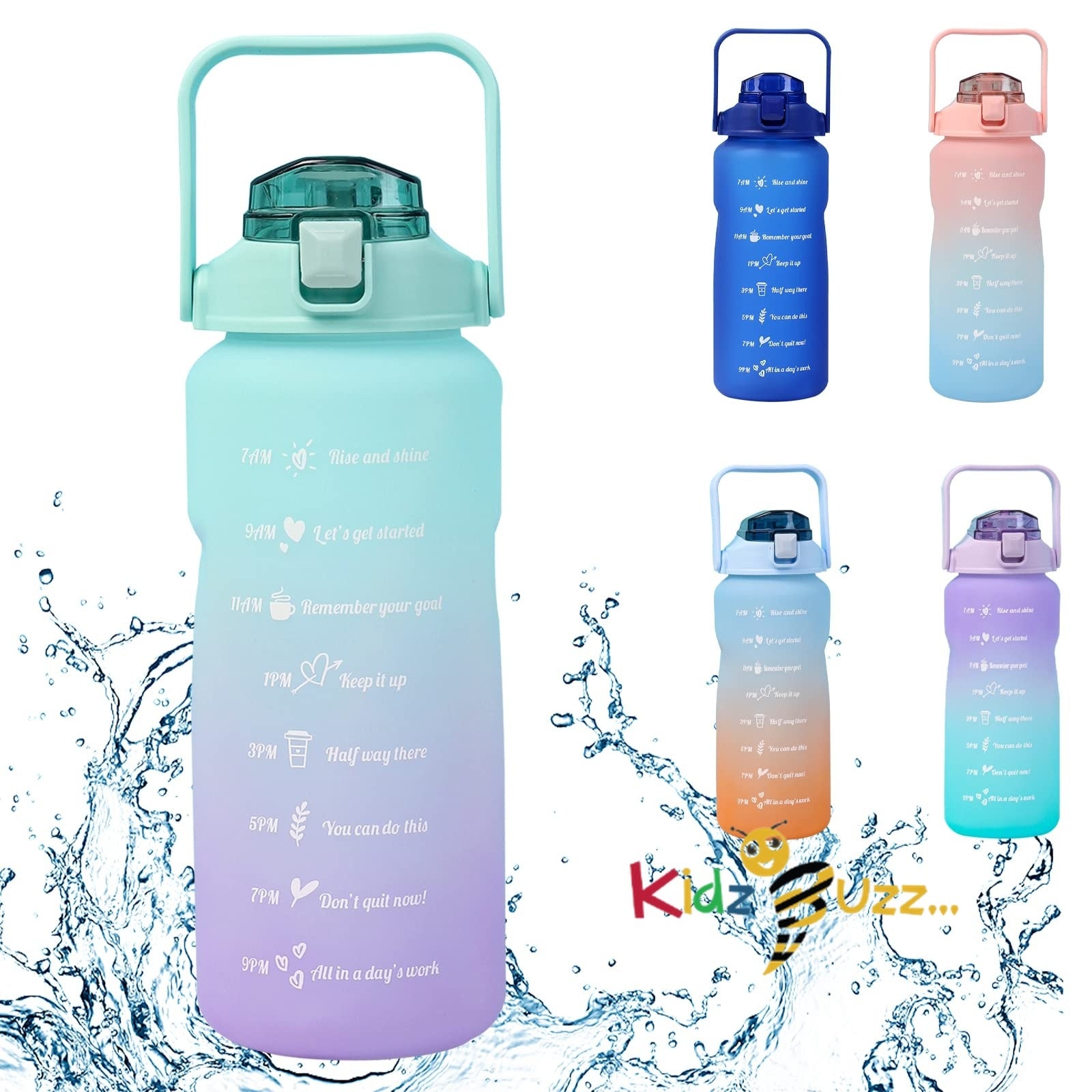 Water Bottle 2L, Sport Drinks Bottle, Sport Bottle with Straw and Time Maker, BPA Free, Leakproof, Plastic Drinks Bottle for Gym, Outdoor, Camping, Cycling Green Purple