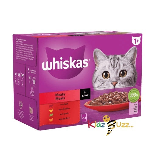 Whiskas 1+ Meaty Meals MixedWet Cat Food Pouches in Gravy 12X85G (CASE OF 4)